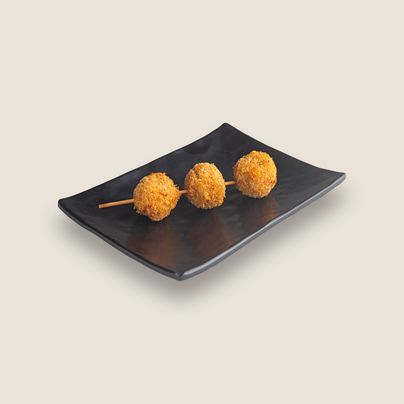 Bite size balls made with prawns, mixed vegetables and curry in panko breadcrumbs