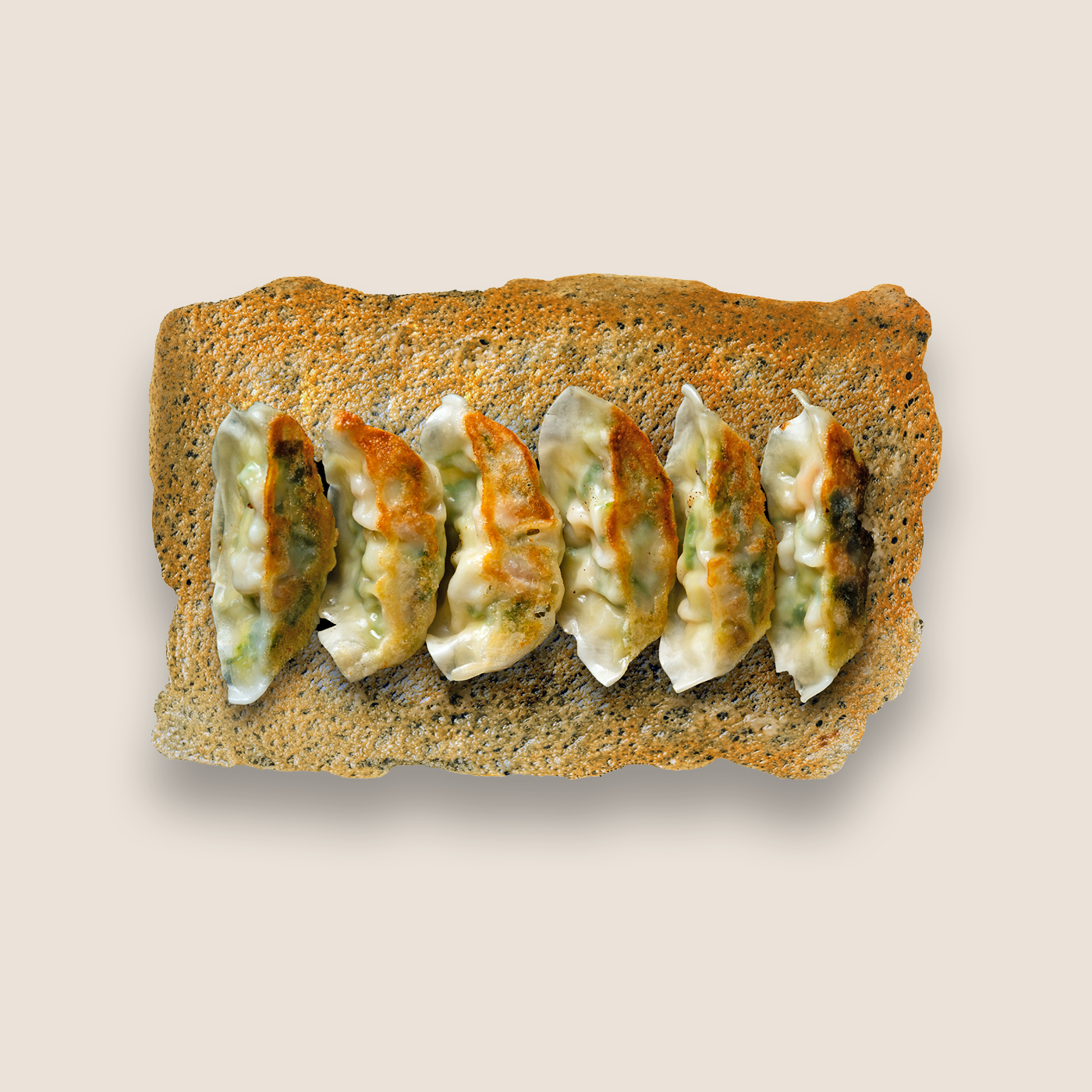 Gyoza filled with chicken, carrot, cabbage, spring onions, garlic, ginger, soya sauce, sesame oil and…